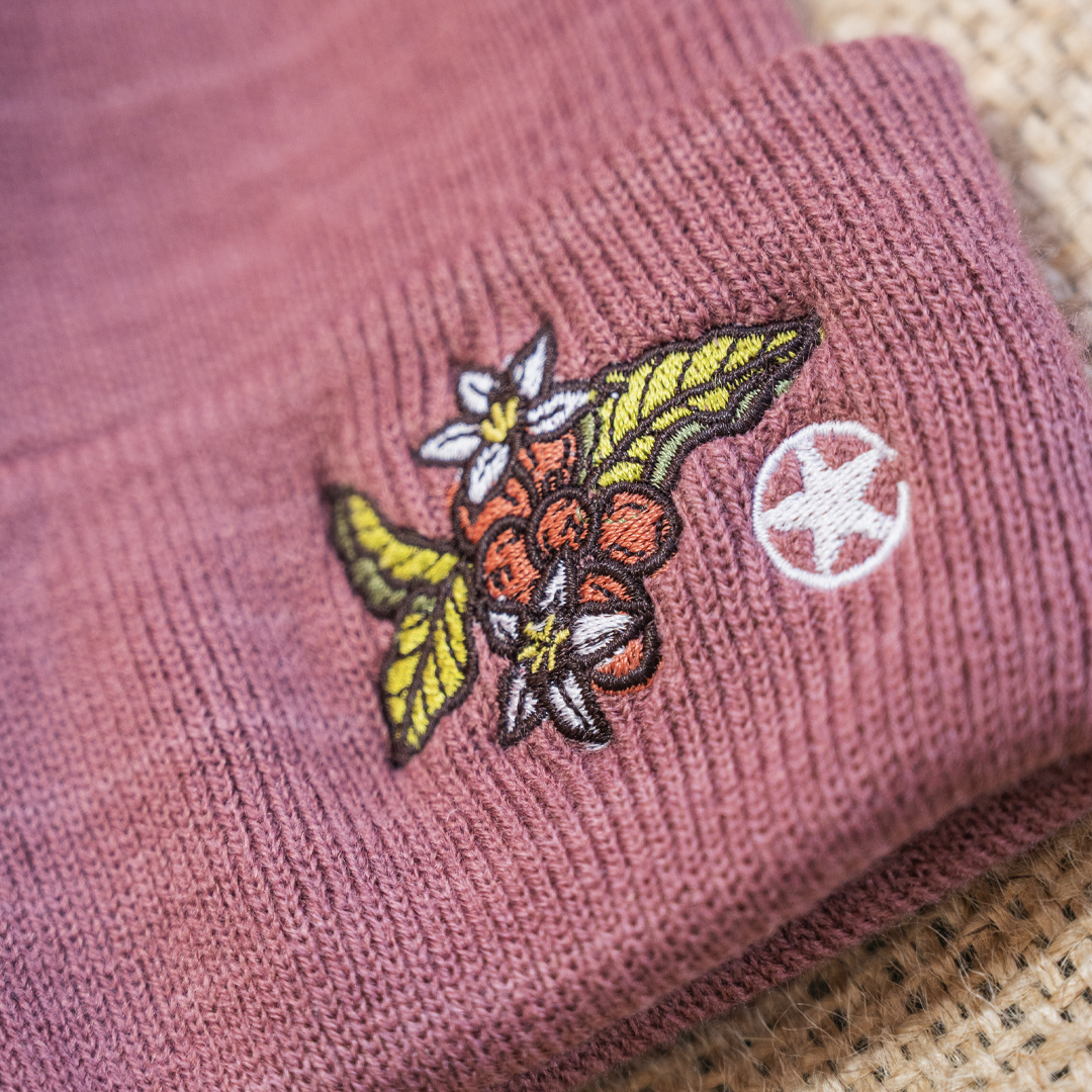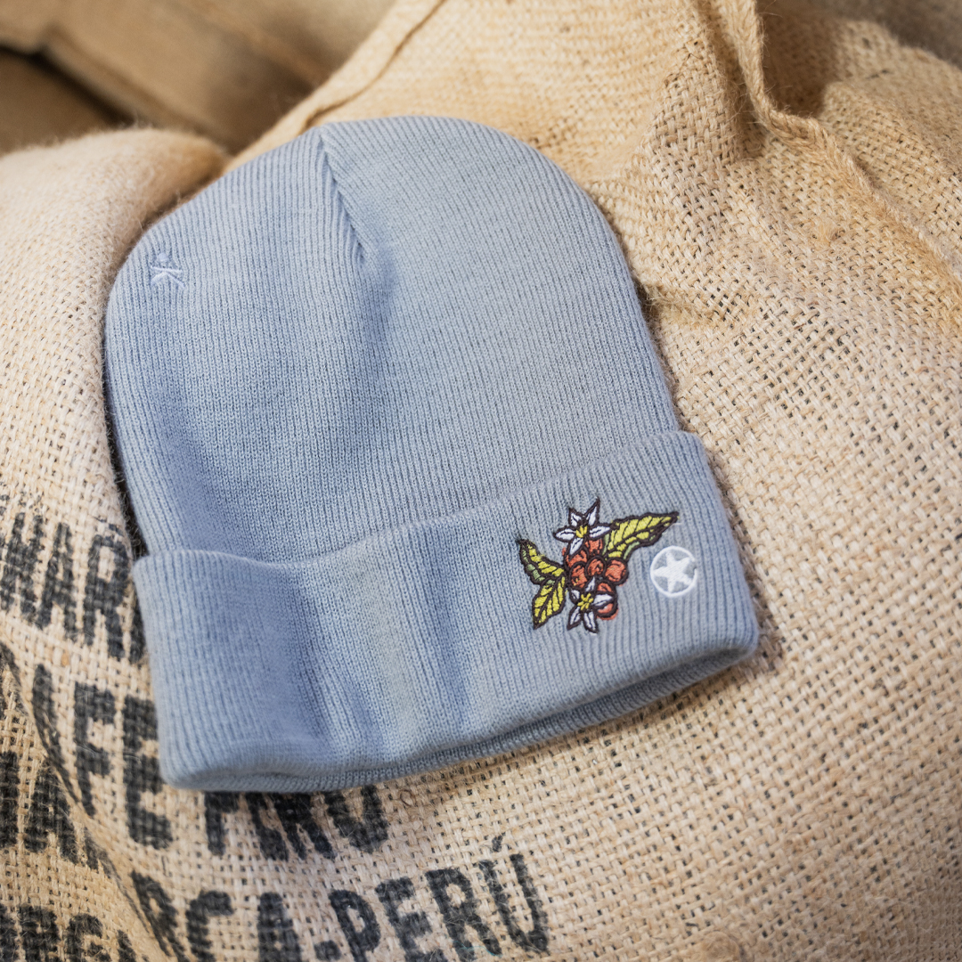 These beanies feature an embroidered coffee plant illustration from local artist, Lisa Quine! These beanies are made of 100% acrylic, of which 50% is recycled.