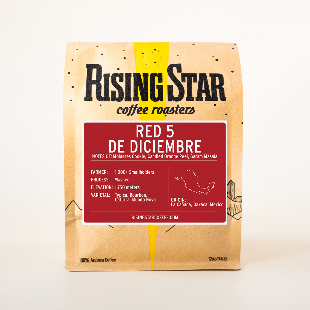 Our newest offering, Red 5 de Diciembre, is the result of an incredible amount of effort and collaboration. The Red 5 de Diciembre network was founded out of a need to save coffee farming in the La Cañada region of Oaxaca. In 2014, La Roya, or coffee leaf rust, swept through La Cañada, creating instability in coffee production and international market interest. On December 5, 2014, a cooperative of 13 community groups came together to help unite 1,300 indigenous coffee farmers to help rebuild coffee production in the area. Over the following six years, producers of Red 5 worked through selective harvesting and specialty processing to bolster confidence in their region, even receiving organic certification along the way. And in 2020, Red 5 de Diciembre teamed up with Ensembles de Café, which has allowed for continued improvement in coffee quality through their cupping team and specialty experience. We are so fortunate to be able to share the labors of Red 5 de Diciembre's hard work with you all. We always look forward to the new crop of Red 5, but this crop is something special. We are tasting the richness of Molasses Cookies, the sweet acidity of Candied Orange Peel, and the warm, earthy spices of Garam Masala. This coffee is a real treat to enjoy as we head into the colder months!